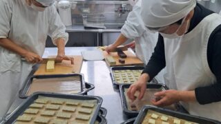 4月16日友の家には、クッキーを焼くいい匂い。働き人8人でロッククッキー900gくらいアイスボックスクッキーはプレーン、...