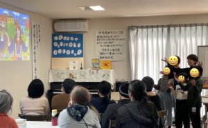 1時からは食堂のテーブルを少し動かして絵本を楽しむ会。