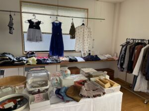 友愛セールは1点100円。食器類も並んでいます。