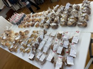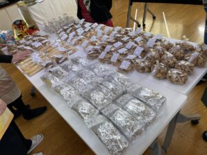 11時前にいらっしゃったお客さまには、1階で待っていただきましたが、その間に共同購入のお部屋では粉豆腐が評判だったり、お菓子の材料にアーモンドや胡桃や干し葡萄を買いましょうの方も。