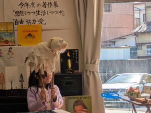 1時からは食堂のテーブルを少し動かして絵本を楽しむ会。