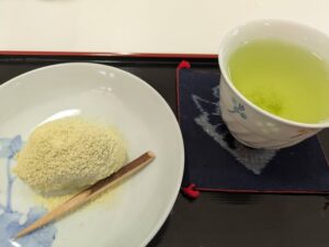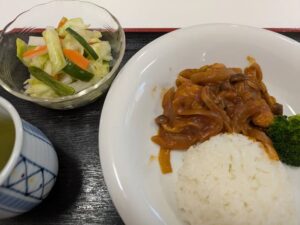 ちらし寿司とチキンブラウンソースライスが選べます。鶯餅が売り切れました。