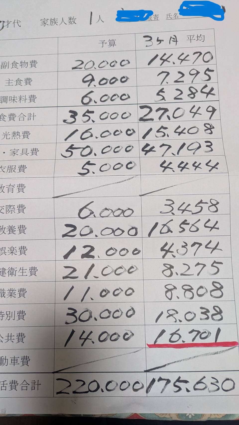 病院への交通費は保健衛生費だが、買い物のタクシーは食費に入れるのでなくそれは特別費で。