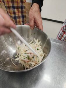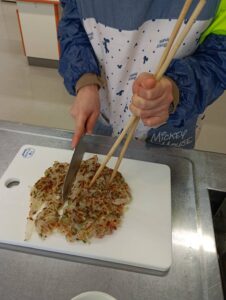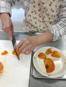 10月青春大学校お菓子教室 青春大学校 2025.11.30 今日のお菓子教室 受講生4名 ボランティア2名 *黒糖ゼリー ゼラチンを使いました。 沸騰しないように注意しました。 ほどよく固まり、柿をのせて美味しくいただきました *大根餅 受講生のリクエストです。 大根の千切り、ベーコンの千切り、青ねぎの小口切りと用心しながら包丁を使いました。 リクエストした受講生も、皆さんも「美味しい❗」と好評でした。
